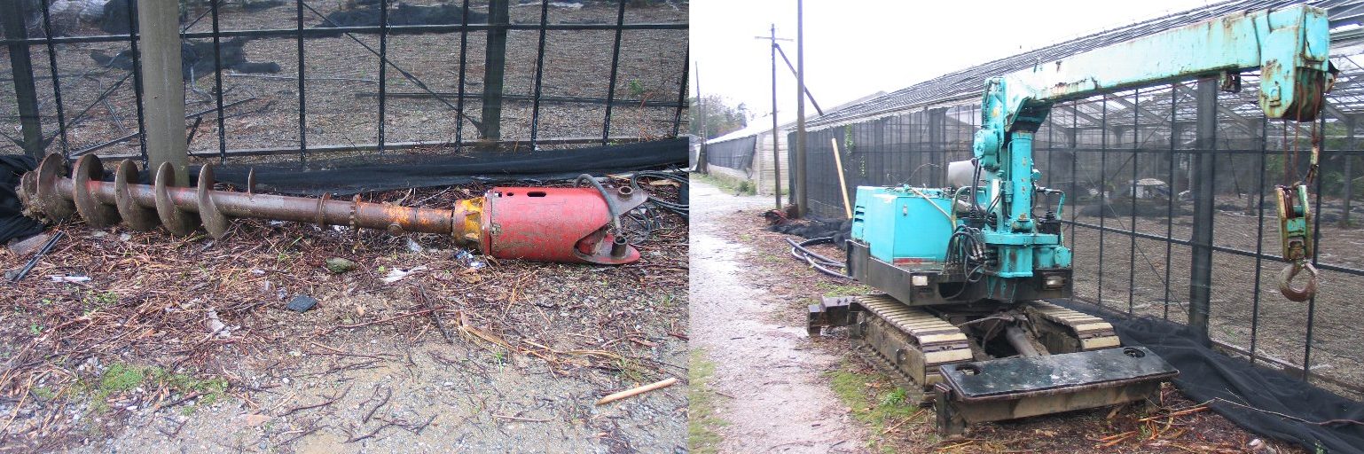 月曜日(28日)ハウスに行くと重機用の大きなドリルとクレーンつきのユンボが