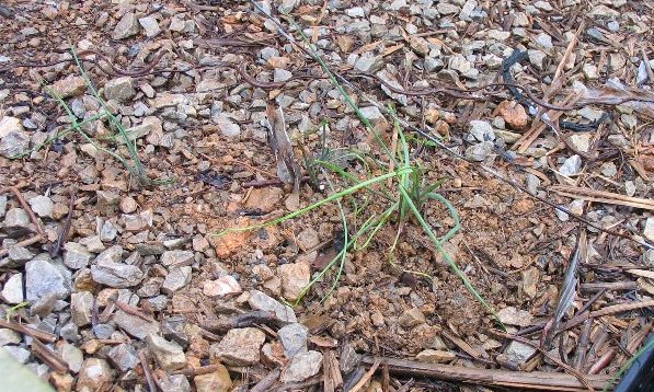 島らっきょう。落とした種が勝手に生えてきた(11月28日撮影)