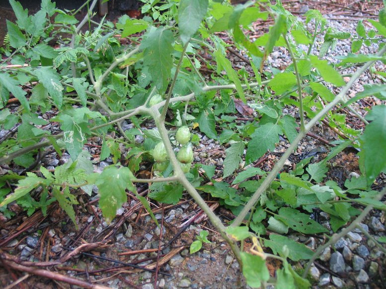 船田さんが地植えしたトマト。一度植替えした為、成長は遅かったけどトマトは実がつき始めていた。