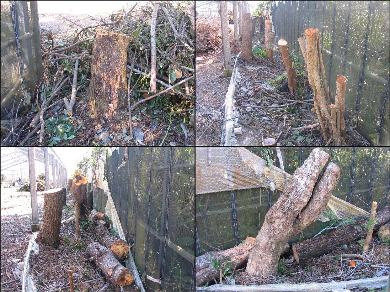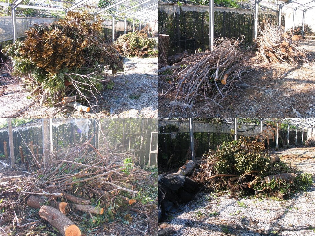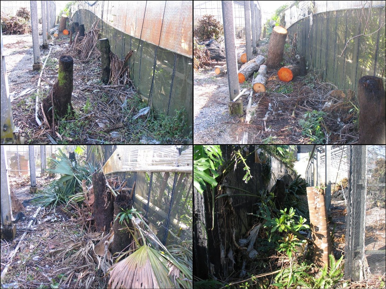 1号ハウスと2号ハウスの間の木は根っこを残し伐採完了。